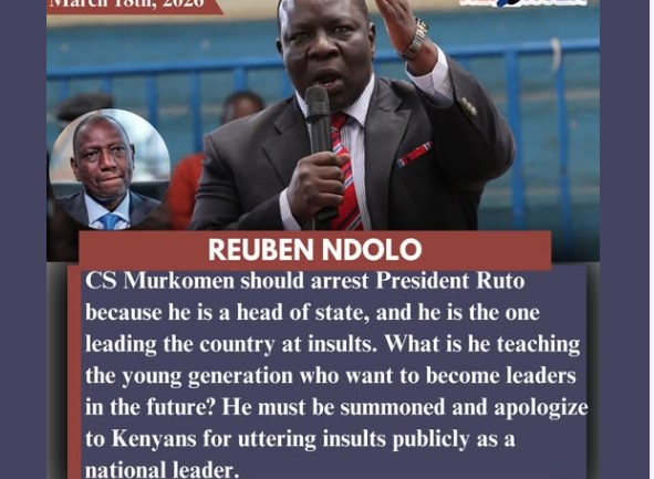Lawyer and political commentator Reuben Ndolo has called for strong action against President William Ruto over what he described as the use of “insults” in public discourse.