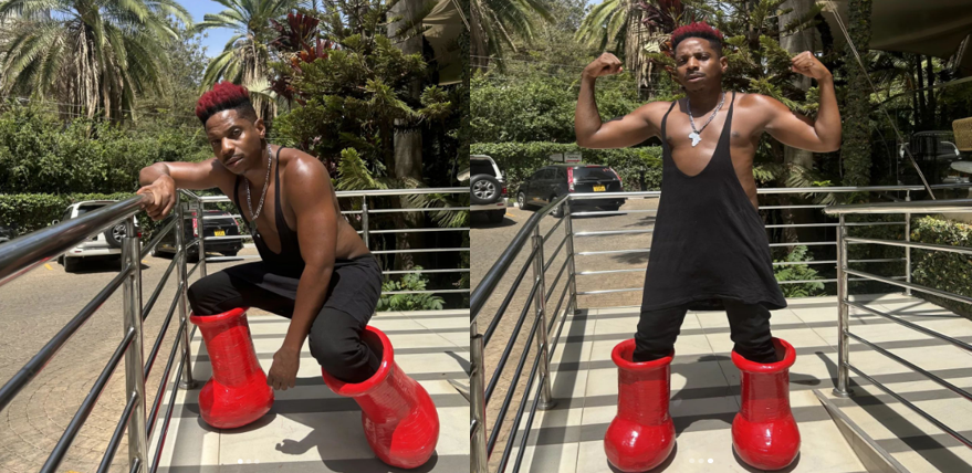 Comedian Eric Omondi recently shared a snapshot donning what appears to be MSCHF’s renowned Big Red Boots, priced at $350 (equivalent to 43,942.50 Kenyan Shilling). He joyfully announced the arrival of his latest fashion acquisitions, emphasizing their swift delivery within three working days.