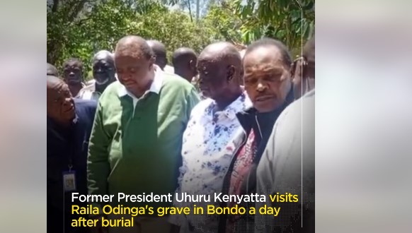 Former President Uhuru Kenyatta made a quiet visit to the late Raila Odinga’s home in Bondo, Siaya County, just a day after the burial of the longtime opposition leader. The visit, which was unannounced, caught the attention of locals who watched as Uhuru arrived under tight security to pay his final respects.