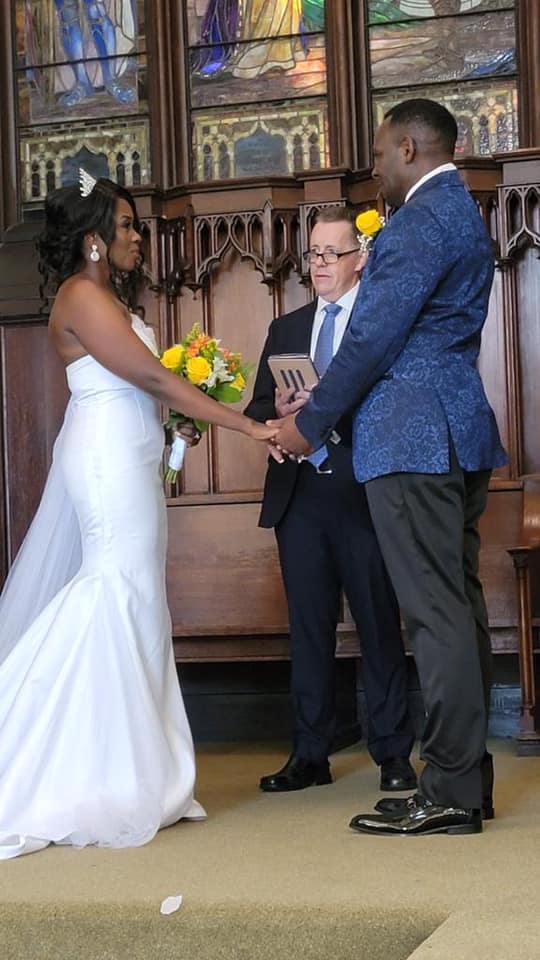 Gloria and Evans traded pledges in a colorful wedding ceremony in Newyork.