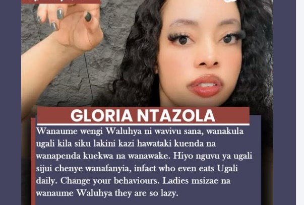 In a strongly worded statement, Ntazola claimed that many Luhya men are lazy and reluctant to work, alleging that some prefer being financially supported by women rather than seeking employment. She questioned what she described as a lack of ambition and went further to criticize certain lifestyle habits, including daily eating patterns, using them as part of her broader argument.