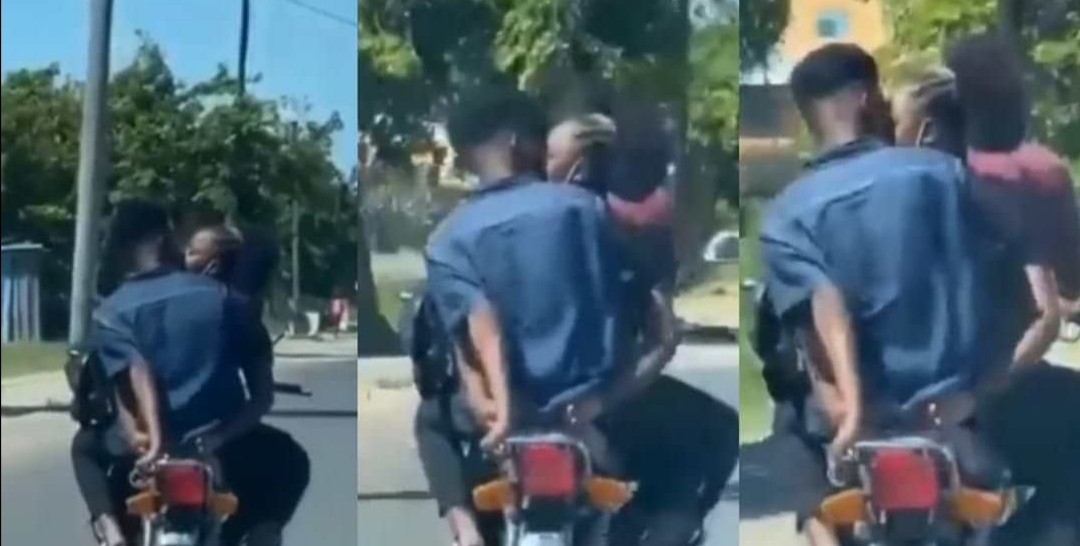 A video doing rounds on social media has caused massive reactions as a couple is seen locking lips on a moving motorcycle on a busy highway.