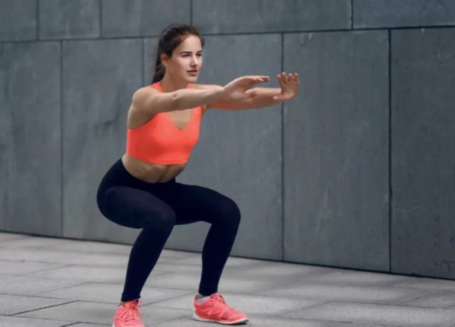In an upright position, place your feet slightly wider, bend and push your lower body as if you want to sit on a chair, in this position drop down until your thigh are in the same position with the ground, pause for a moment then go up and keep repeating.