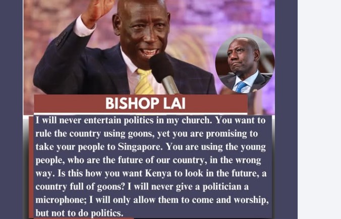 By rejecting political speeches in church, Bishop Lai emphasizes the need to protect religious institutions from becoming platforms for political mobilization. In Kenya, it has become common for politicians to attend church services and address congregations, often using the opportunity to shape public opinion. While some view this as engagement with the community, others see it as an intrusion that risks dividing worshippers along political lines.