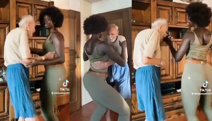 A young woman has sparked discussions among internet users by posting videos of herself having a playful time with her much older Caucasian partner.