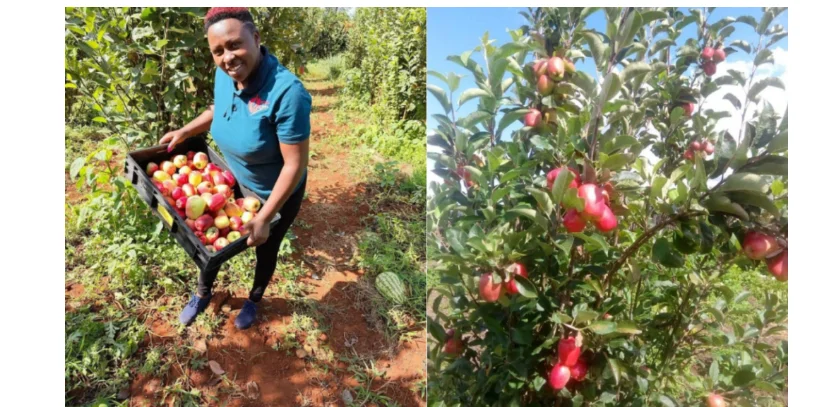 Apple farming is highly profitable, Kate reveals. Once planted, apple trees begin to produce fruit in just nine months. An acre can support 600 seedlings, with each tree yielding up to 200 fruits per harvest. The longevity of apple trees is another advantage, with a potential for 100 years of harvests. Depending on the season, a farmer can earn up to Ksh10 million per acre per harvest, with the possibility of three harvests per year.