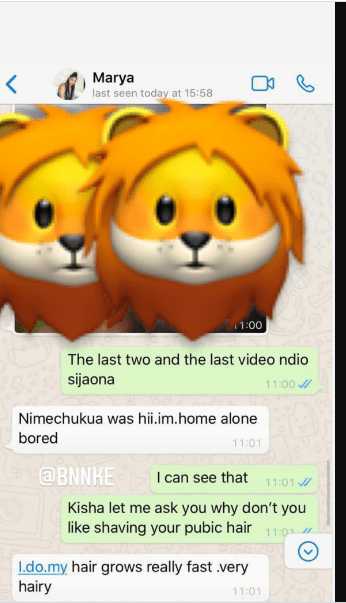 This was uncovered by Edgar Obare through his BNN Instagram page after one of her customers released private talks negotiating for nudes with her.