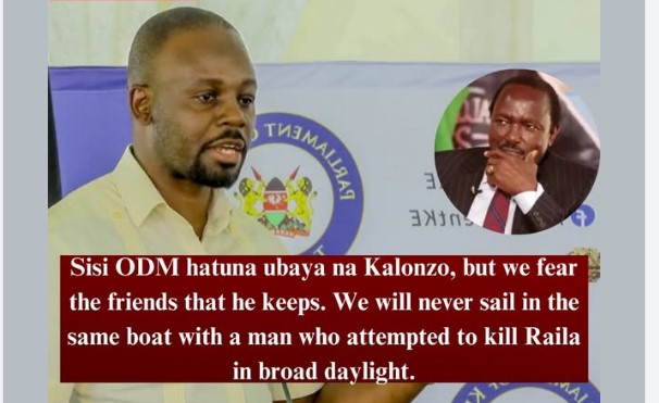 Kajwang said ODM respects Kalonzo as a long-time ally, but the party cannot align itself with individuals he associates with, especially those accused of plotting political harm against Raila Odinga in the past. Speaking during a public event, Kajwang declared that ODM would “never sail in the same boat with a man who attempted to kill Raila in broad daylight.”
