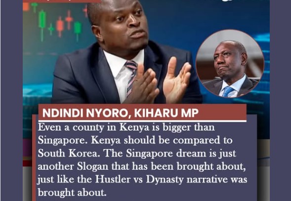Kiharu MP Ndindi Nyoro has dismissed President William Ruto’s frequent comparison of Kenya to Singapore, terming it unrealistic and politically driven. According to Nyoro, Kenya’s economic and structural realities are far too different from those of the Asian city-state to justify such parallels.