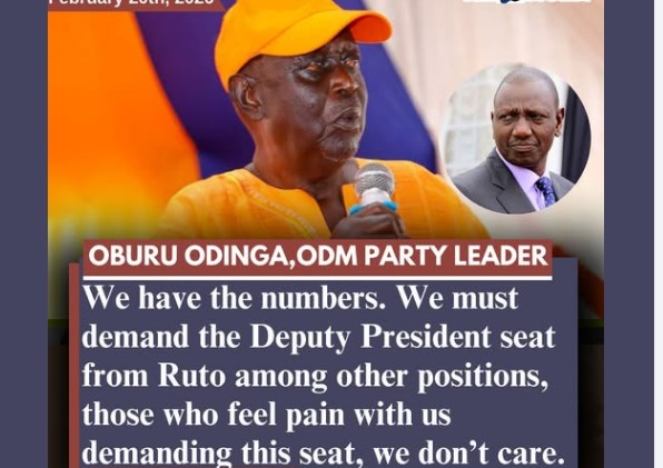 Senior ODM leader Oburu Odinga has boldly stated that his faction possesses sufficient political backing to demand the Deputy President position from President William Ruto, alongside other key government roles.