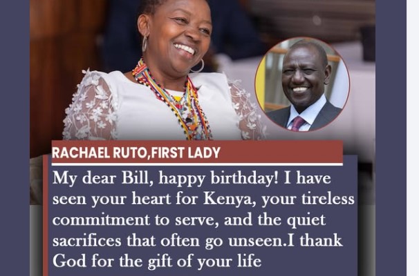 First Lady Rachael Ruto has shared a heartfelt birthday message celebrating President William Ruto, praising his dedication to the nation and his personal sacrifices. In an emotional tribute, Rachael described the president as a committed servant of Kenya whose passion for public service continues to inspire her.
