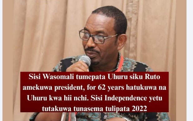 “Sisi Wasomali tumepata Uhuru siku Ruto amekuwa president. For 62 years hatukuwa na Uhuru kwa hii nchi. Sisi independence yetu tutakuwa tunasema tulipata 2022,” Maalim said.